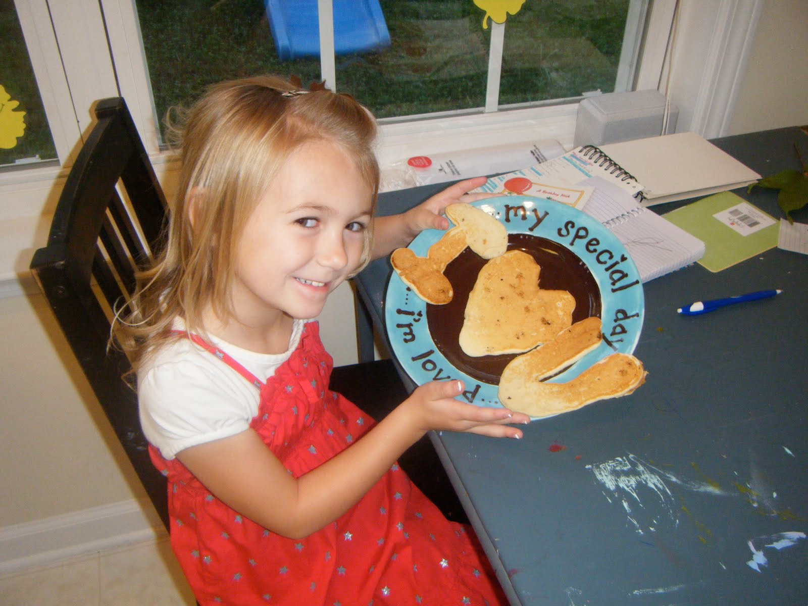 Birthdays are big at our house. we wanted Hannah to feel special and loved. She woke up to her room being covered in streamers and balloons. Decorating her room with jeremy while she slept reminded me of my teenage years of toliet papering friends’ houses. Next she enjoyed chocolate chip pancakes made by daddy. I made her a cupcake pin that said,”it’s my birthday!” We surprised her with lunch from McD. and brought cupcakes and drinks to her class. For her party we did a cooking themed party. we made chef hats with strips of posterboard and plastic shopping bags. i had them powder their faces with flour for an authentic look. the kids decorated mini cakes with bagged frosting. They also made little pizzas using sandwich thins. They played pancake relays, racing to carry a pancake on a spatula and return it to their team’s frying pan. Then finally they played pin the chef hat on the chef. I probably had as much fun planning it all as she had enjoying it.