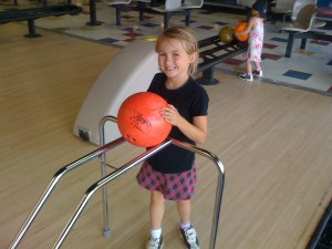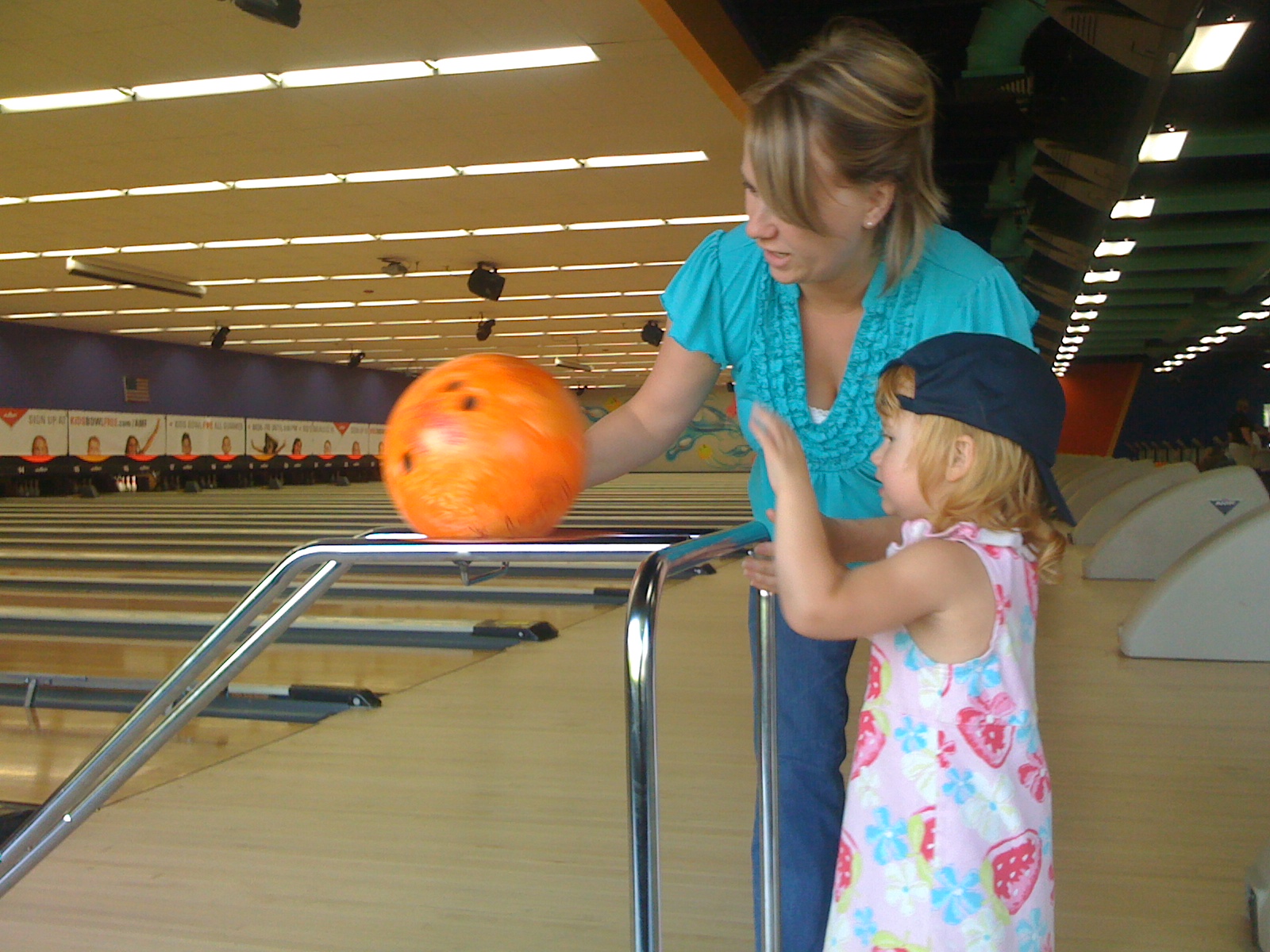 this Friday family fun night we went bowling. The alley has this deal in the summer. Kids get to bowl free. sounded like a good deal but we still had to pay for shoes. so it costed us 10 instead lots more. =) Hannah enjoyed it more than Joy. Joy only lasted a few rounds.