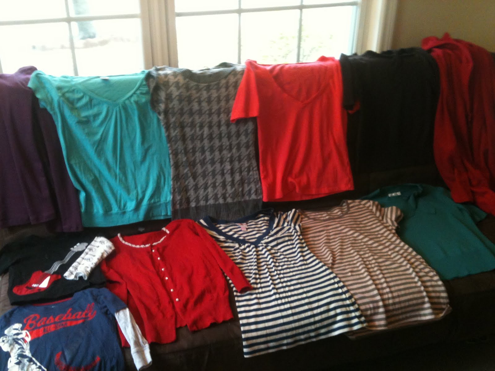 The thrift store had a buy one get one free for the women’s clothing. So for 14 bucks I got a robe(cause my house is chilly!), 2 shirts for Isaiah, and 9 tops for me. I decided to look up online how much these would have costed me if I bought them new.