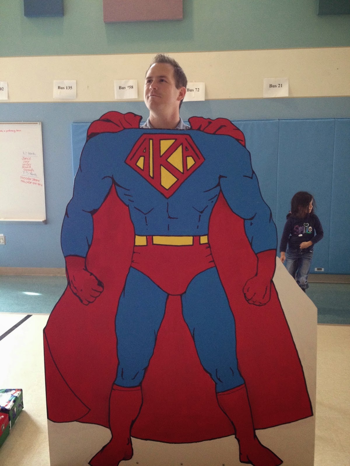 | A picture that may embarrass him 🙂 but it fits. We did a superhero series at church and Josh Grossman painted these cool cutouts for us as photo props. |